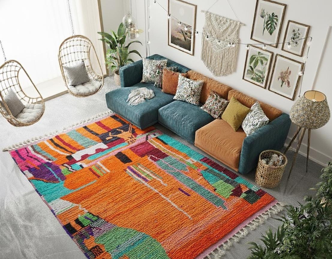 Orange Wool Berber Rug – Colorful Moroccan Boho Area Rug