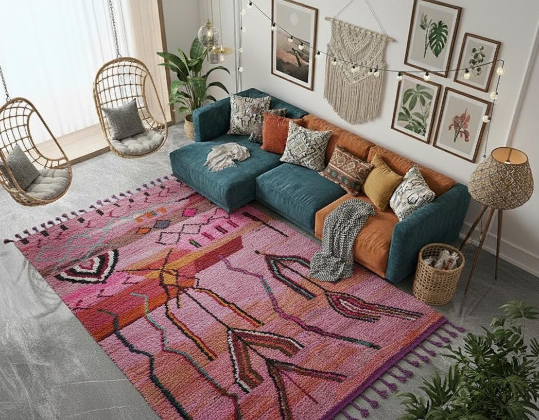 Handwoven Pink Moroccan Berber Rug: Boujaad Wool Area Rug