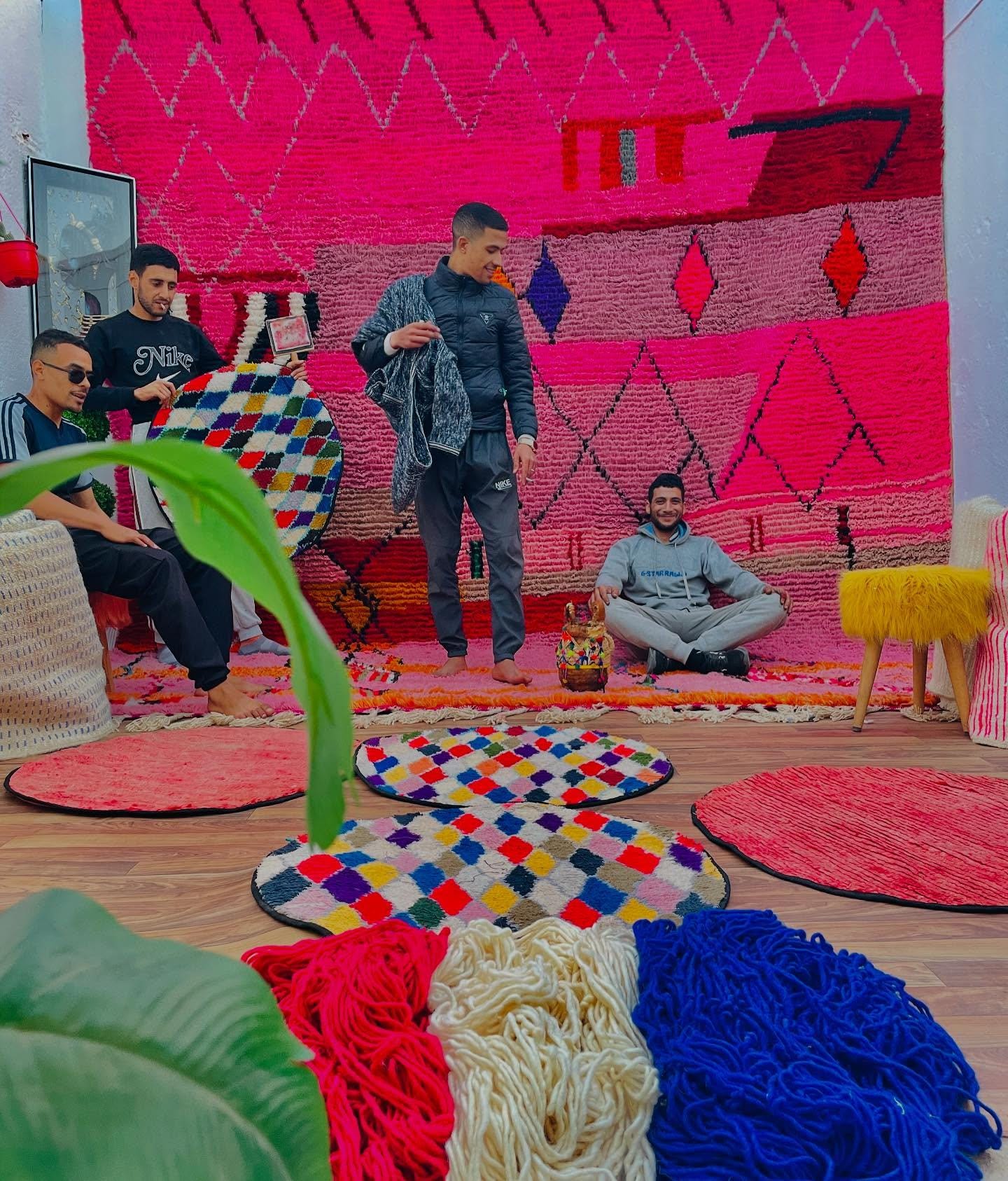 Brighten your home with this Handmade Red Boujaad Moroccan Rug, a bold statement piece crafted by Berber women in the Atlas Mountains. Each Boujaad rug is a story woven in wool — blending generations of Moroccan craftsmanship with artistic color combinations that make every piece truly one-of-a-kind.