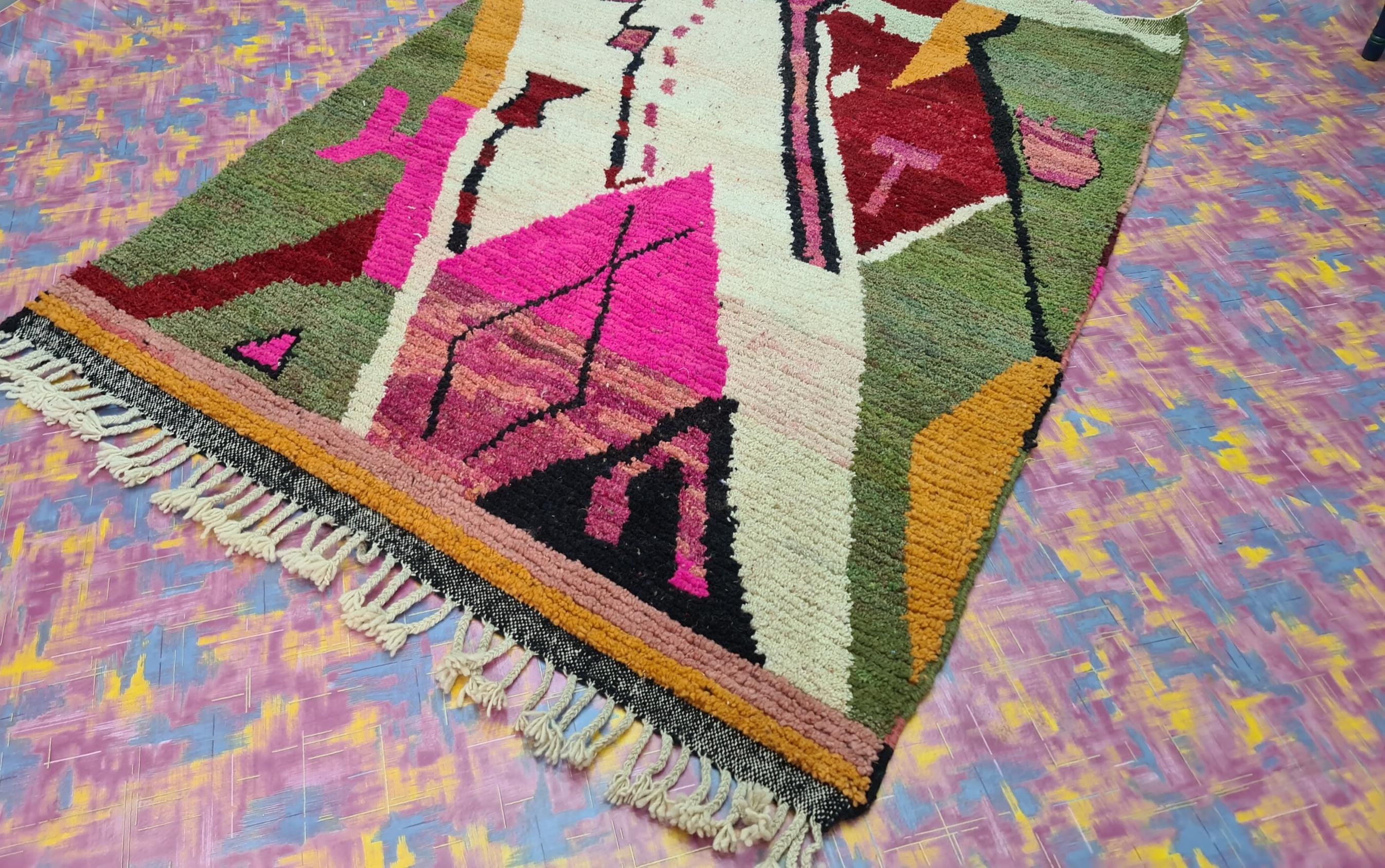 Handmade Moroccan Wool Rug, Asymmetrical Berber Design