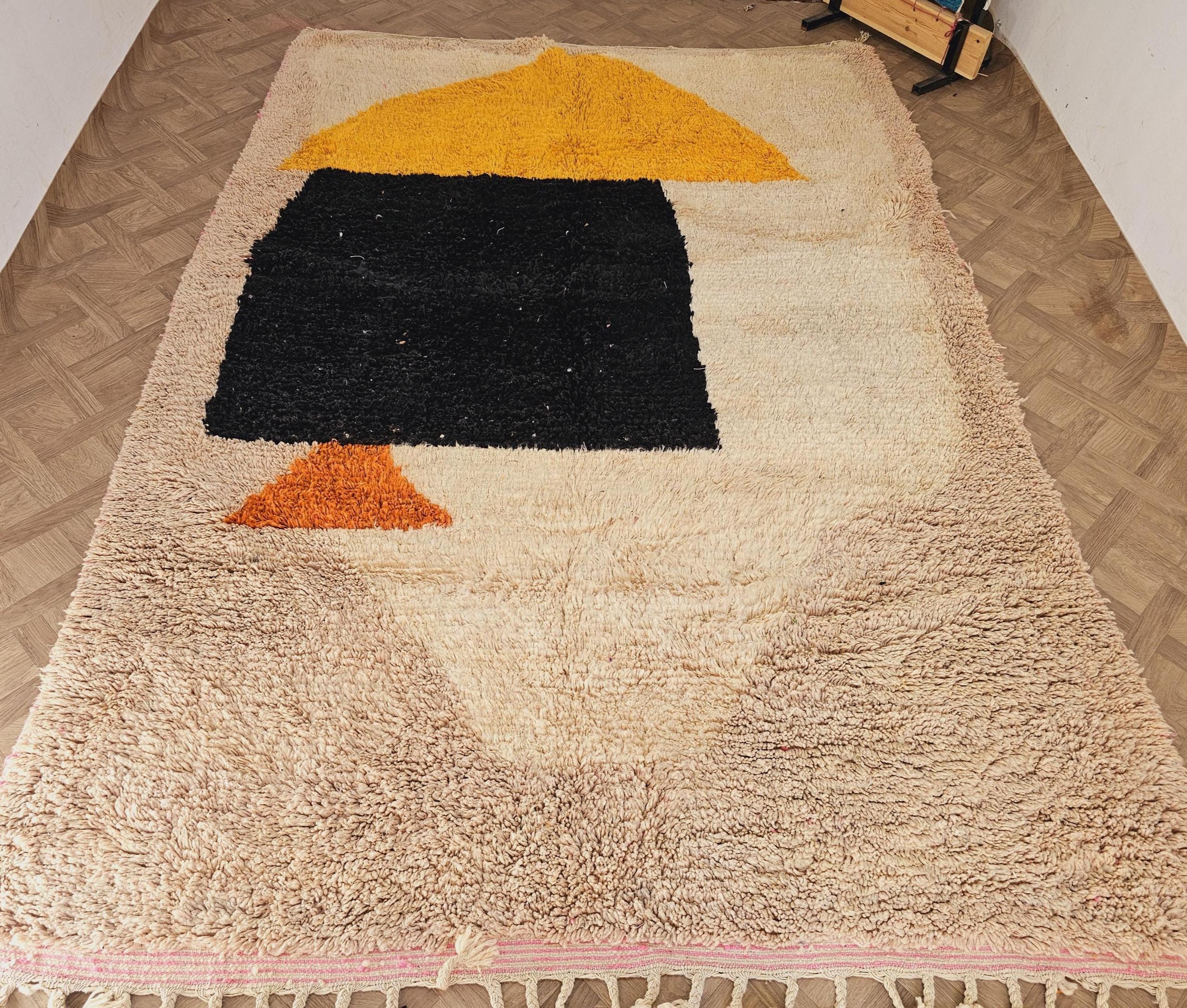 Handwoven Beige Moroccan Berber Rug: Beni Wool Area Rug
