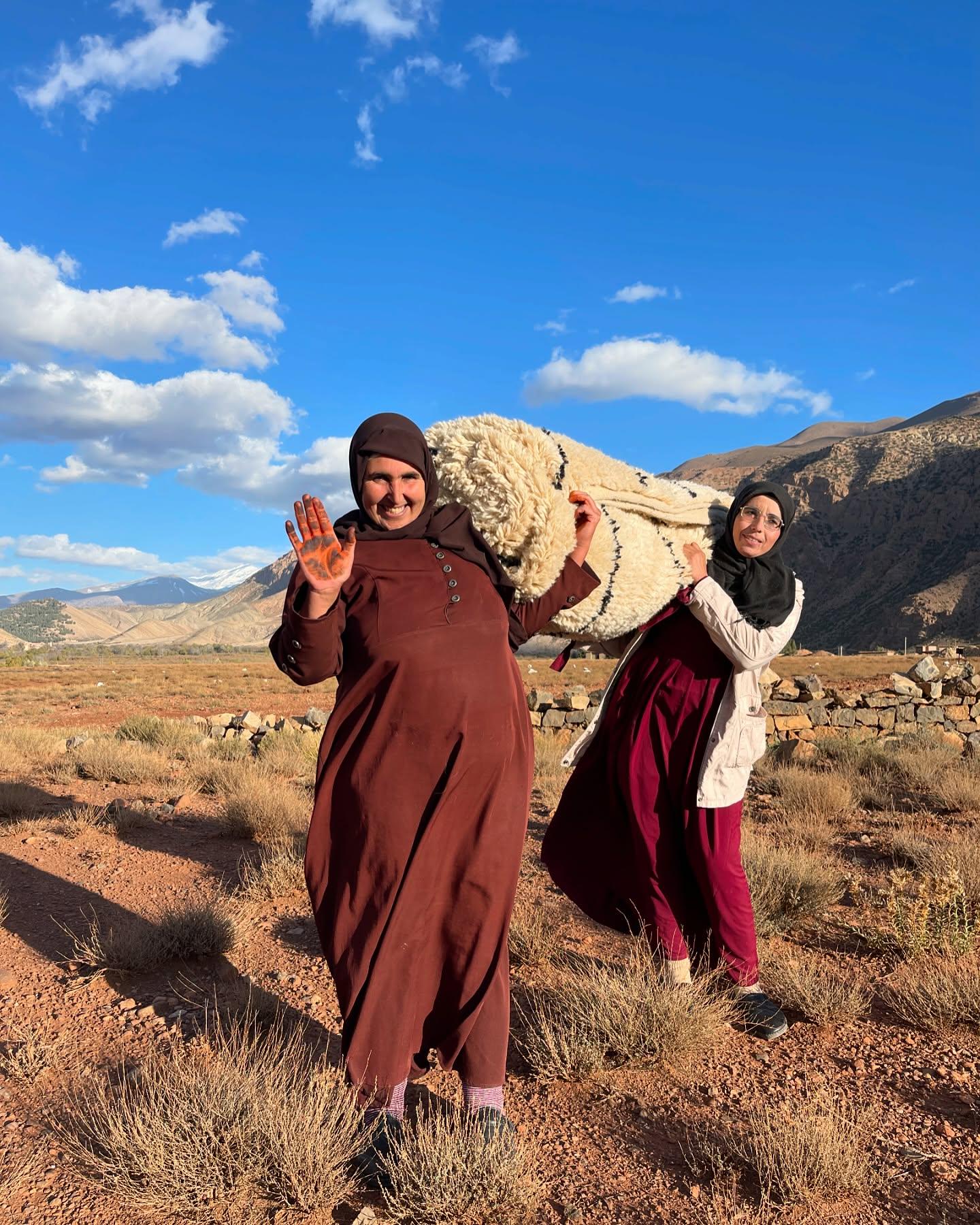 • Woven by Berber women in the Atlas Mountains