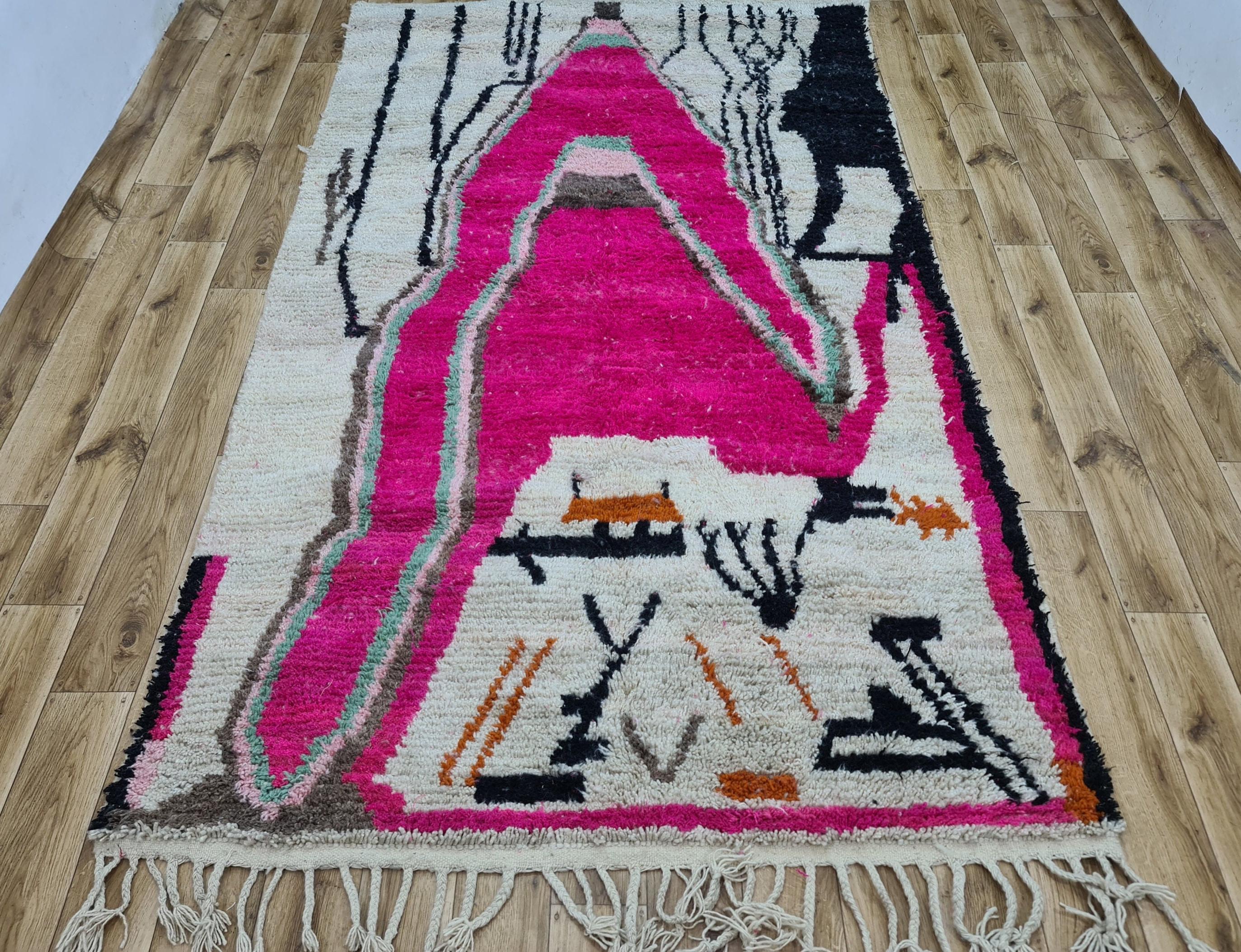 Handmade Boujaad Wool Rug 8x10, Pink Moroccan Christmas Rug
