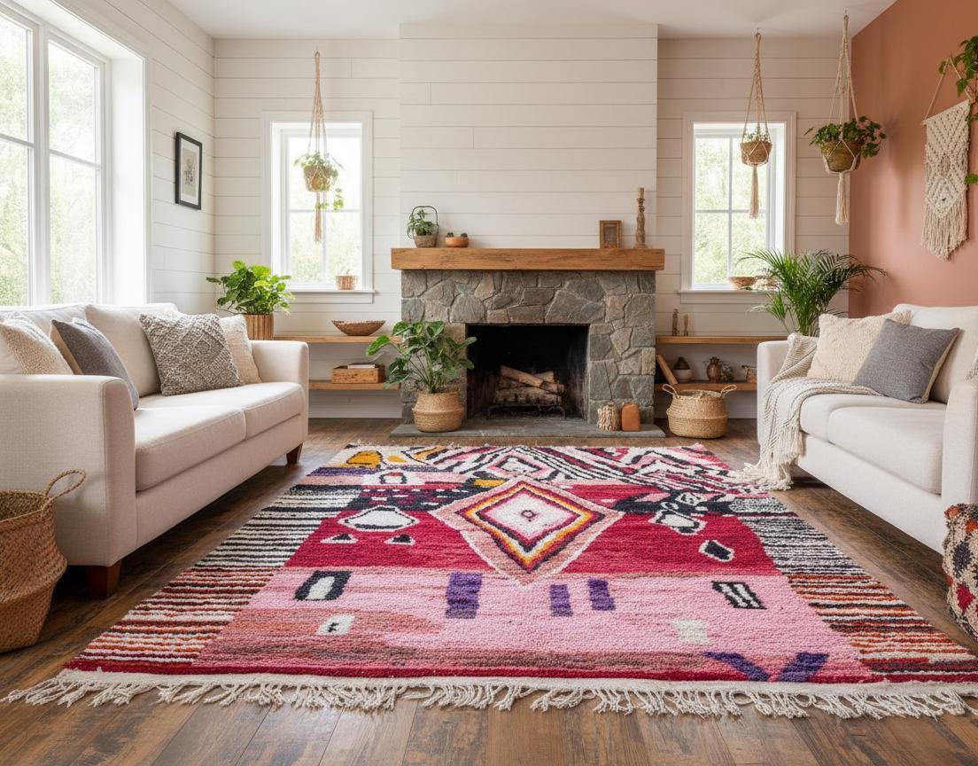 Authentic Large Moroccan Rug - Pink Boujad Area Rug - Bohemian Living Room Decor - Custom Rug