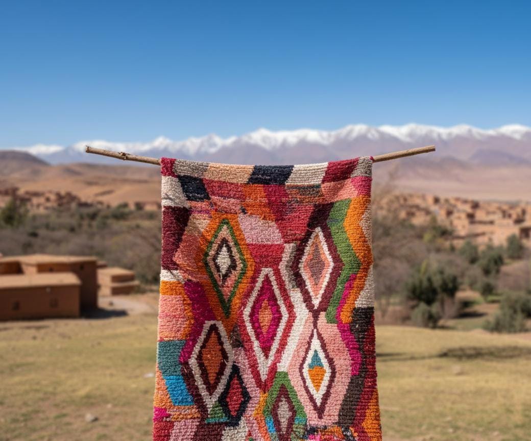 Handmade Boujaad Moroccan Area Rug 8x10 - Geometric Diamond - Pink Red Green Blue - Custom Shapes