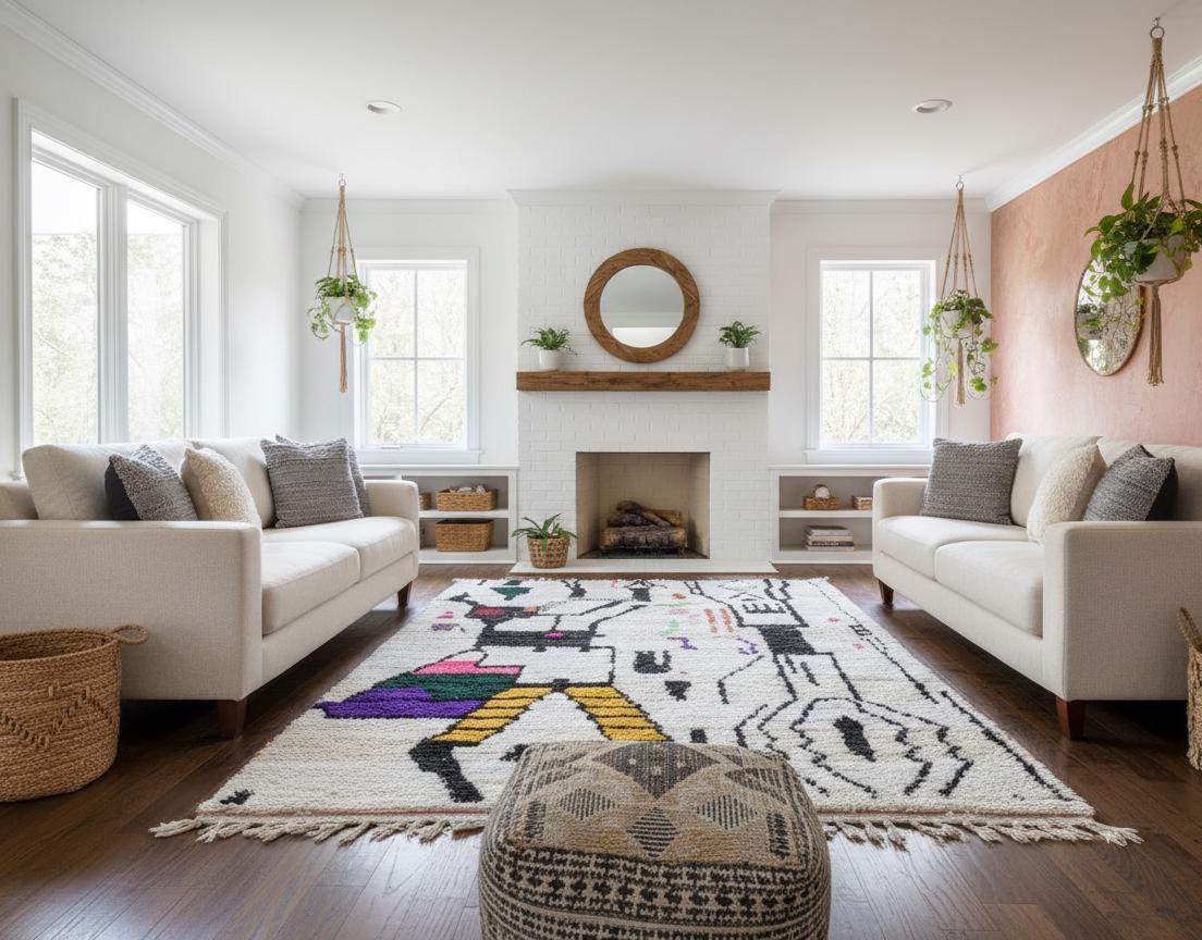 Hey there! Check out this gorgeous, authentic Moroccan Boujaad Rug. It's handmade by Berber artisans and has that cool, vibrant Azilal style, but in a unique color palette.