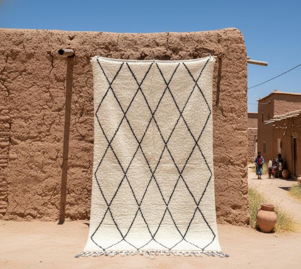 It blends that handmade Beni vibe with a clean, modern look. Great for bohemian, minimalist, or Scandinavian interiors. If you love custom wool rugs but need something ready to ship, this is it!
