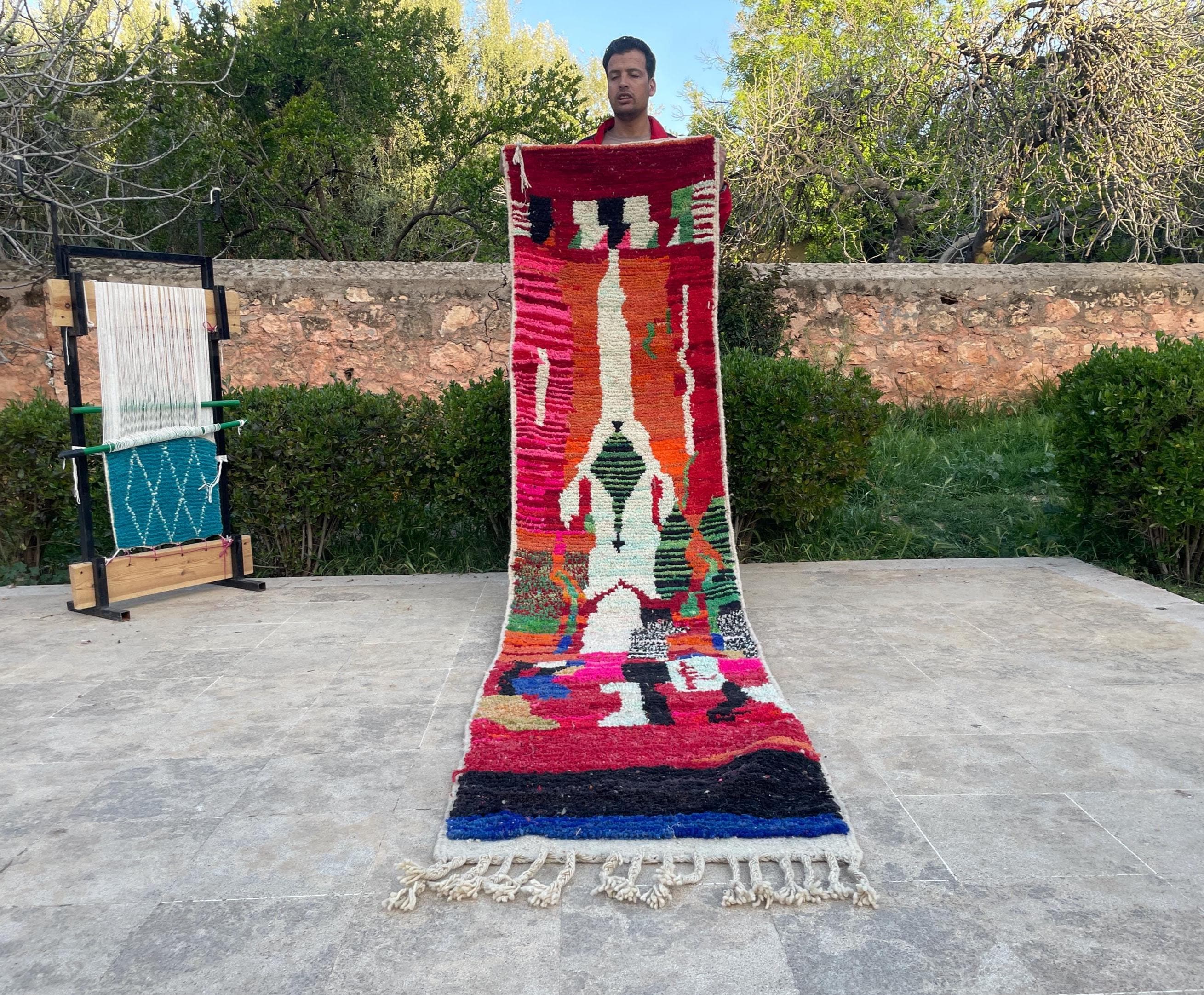 Transform your space with our vibrant Moroccan Runner Rug, featuring a striking image of a man that adds a unique touch to any room. This handmade custom rug is not only a stunning piece of funky home decor but also a perfect gift for her or a cool housewarming present for new homeowners. Crafted from high-quality Moroccan wool, it serves as an eye-catching kitchen runner or a stylish stair runner, making it a versatile addition to your home. Embrace the trending style and elevate your interior with this one-of-a-kind rug that combines artistry and functionality.