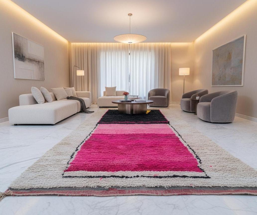 These sophisticated Moroccan rugs integrate effortlessly into a wide range of interiors, including Modern, Minimalist, Scandinavian, Bohemian, and Traditional spaces. Beni Ourain rugs are also internationally recognized and have been featured in leading home décor publications for their timeless appeal and versatility.